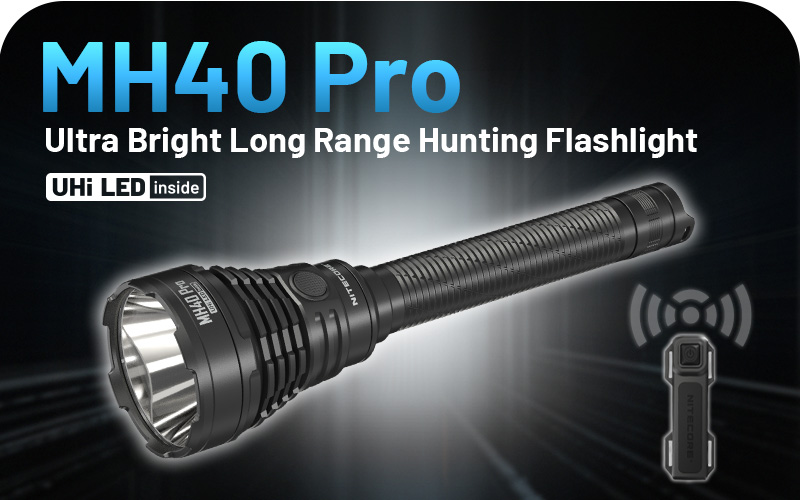 Baterijska lampa Nitecore Mh40 PRO lampa sa jedinstvenim rešenjem wireless mikroprekidača, baterijom kapaciteta 10000mAH, dometom sveta do 1300 metara, ugrađeni najnoviji UHi led emiteri.