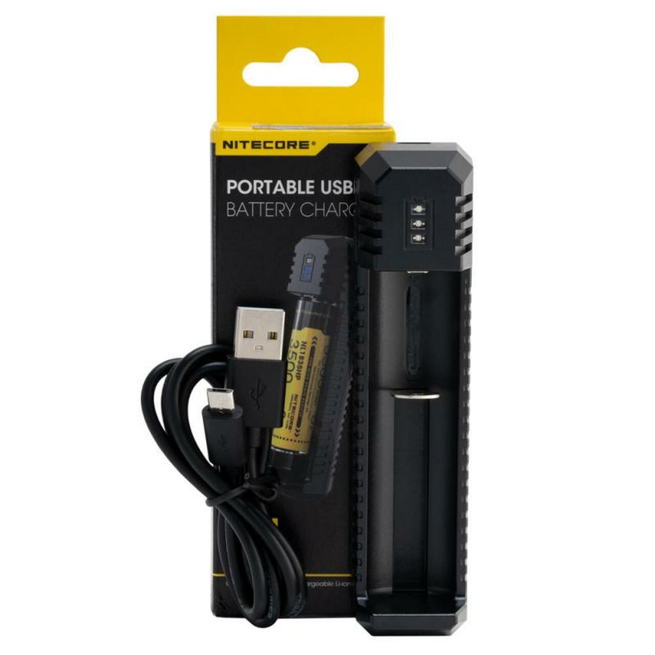 Prenosni USB punjač kompaktibilan sa punjivim Li-Ion baterijama.